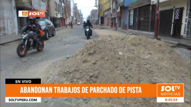 Los vecinos de Trujillo han expresado su malestar por el abandono de los trabajos de parchado de la pista en el Jr. Atahualpa, que quedaron inconclusos tras un mes de inicio. Según los afectados, la municipalidad provincial comenzó con la intervención pero dejó escombros y materiales tirados, afectando la movilidad en la zona y generando accidentes. Esta obra inconclusa también ha provocado que los comerciantes de la zona se vean perjudicados por la baja en el flujo de clientes.