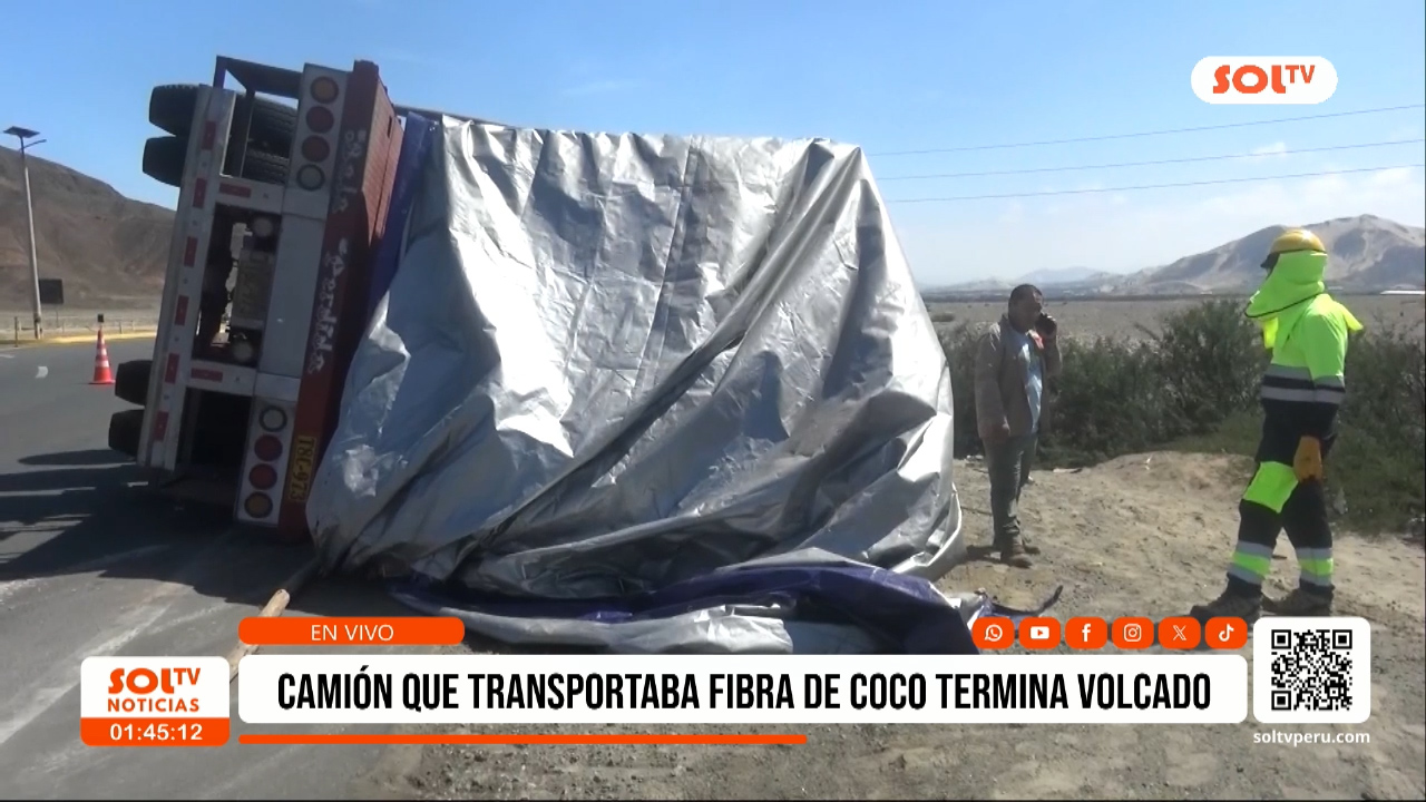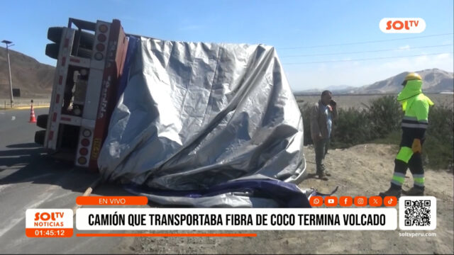 La tranquilidad del tránsito en el óvalo Tanguche, una de las vías más transitadas en la Panamericana Norte, se interrumpió este viernes tras el vuelco de un camión cargado con fibra de coco. La escena causó impacto entre los transportistas: la pesada unidad quedó de lado, con su mercadería regada y el parabrisas completamente destrozado. La situación generó gran congestión vehicular y preocupación en la ciudad de Chao.