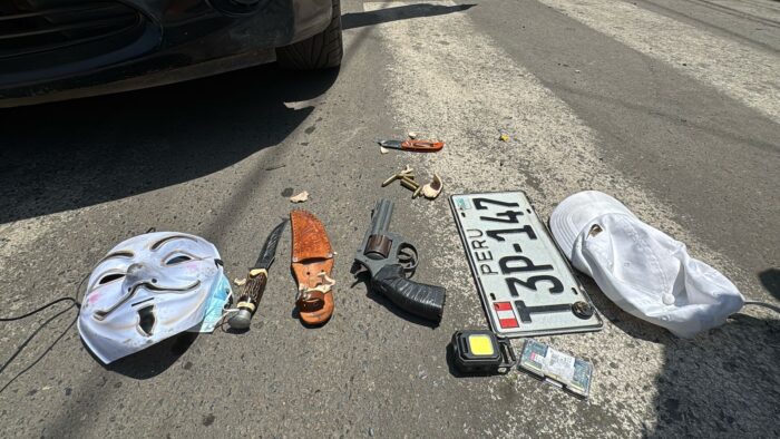 Los agentes incautaron municiones, teléfonos celulares y una máscara, presuntamente usada para ocultar el rostro durante seguimientos a víctimas, según información de la Policía Nacional. La PNP presume que los detenidos formarían parte de una banda criminal especializada en marcaje y reglaje. Esta modalidad afecta principalmente a ciudadanos que realizan retiros bancarios.