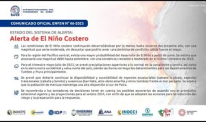 La Comisión Multisectorial del Estudio Nacional de El Fenómeno El Niño (Enfen) anunció que mantendrá el estado de “Alerta de El Niño Costero” con una magnitud moderada al menos hasta invierno de este año. Y no descarta que en abril se alcancen magnitudes fuertes, según el útilmo análisis.
