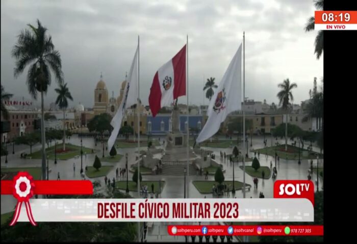 Desde la Plaza de Armas de Trujillo, el personal de la Policía Nacional, Ejército, Marina, autoridades de la región y público se reunieron para homenajear a Perú en su aniversario.