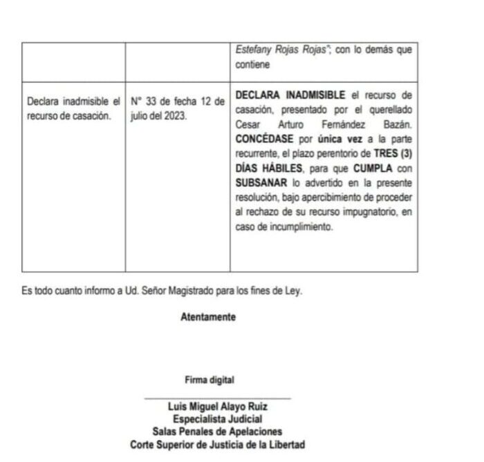 Cabe mencionar que, Fernández buscaba anular la sentencia dictaminada en su contra por el delito de difamación agravada hacia la agente Nataly Rojas Rojas.