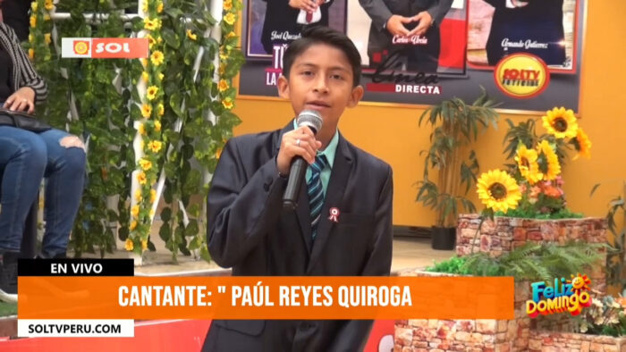El pequeño cantante de cumbia, Paul Reyes Quiroga estuvo en SOL TV para animar el escenario. Con una interpretación del clásico del género, deleitó al público del escenario de «Feliz Domingo», el Magazine Informativo Dominical de SOL TV.
