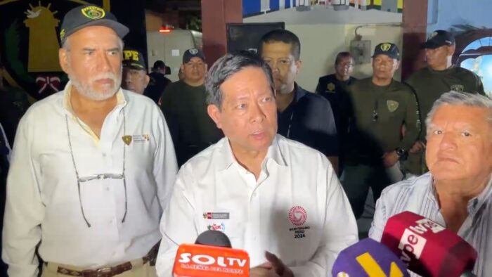 «En cumplimiento del trabajo que estamos realizando desde el Gobierno, en conjunto con el Gobierno Regional, la PNP, el Ministerio del Interior y el Ministerio de Justicia, han dispuesto el traslado de los internos más peligrosos a otros penales del país. Esta medida que se está tomando el día de hoy, es producto de la inteligencia de la Policía Nacional que ha realizado e identificado, en algunos casos en los que estamos iniciando con 13 internos, para que sean reubicados en otros penales de alta peligrosidad«, señaló el ministro Arana en los exteriores del penal El Milagro.
